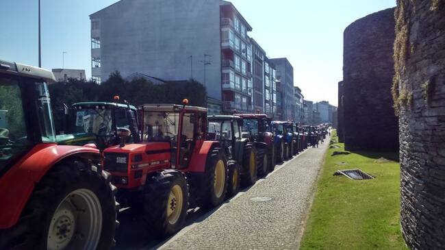Tractorada alrededor de la Muralla de Lugo en protesta por los bajos precios de la leche. / Radio Lugo