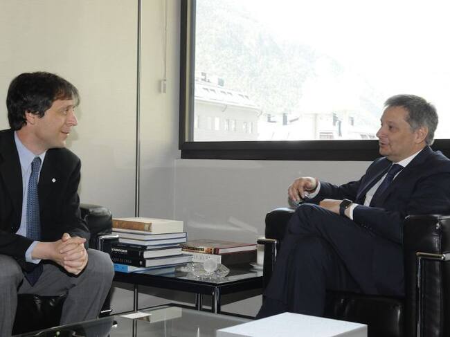 El ministre d'Afers Exteriors, Gilbert Saboya, amb el cap d'unitat de la Divisió per a la recerca de finançaments del Comitè Internacional de la Creu Roja, Benno Kocher / SFGA