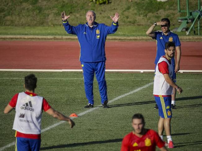 El seleccionador español, Vicente Del Bosque, durante el entrenamiento de la selección española de fútbol en la Ciudad del Fútbol de Las Rozas. / Emilio Naranjo (EFE)