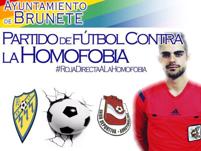 El Ayuntamiento de Brunete organiza este domingo, a las 11:30h, un partido contra la homofobia. El encuentro será un amistoso entre los equipos rayo Brunete y Unión Deportiva Arroyomolinos y estará arbitrado por el gaditano Jesús Tomillero, quien en las últimas semanas debió dejar de arbitrar partidos, tras reconocer públicamente su homosexualidad y sufrir tras ellos insultos y ataques homófobos.