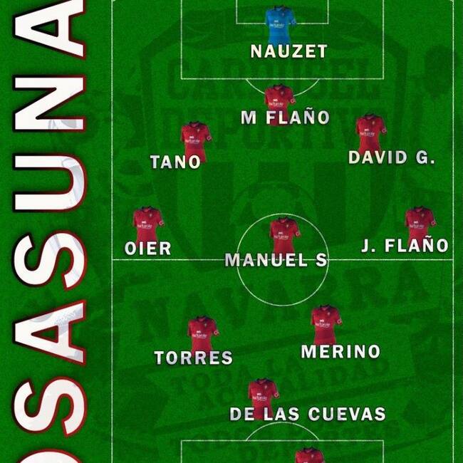Martín Monreal cuenta en Osasuna con toda la plantilla a su disposición y todo apunta a que repetirá el once titular que tan buen resultado le dio en semifinales ante el Nastic de Tarragona. Manuel Sánchez se afianza en el pivote para liberar de tareas defensivas a Mikel Merino que ha permitido ver la mejor versión del futuro jugador del Borussia Dortmund sin duda clave en las últimas jornadas marcando 6 goles en los 6 últimos partidos. Completa el centro del campo un recuperado Roberto Torres con Miguel De Las Cuevas en el mejor momento de la temporada en la mediapunta y con Kenan Kodro en la delantera.