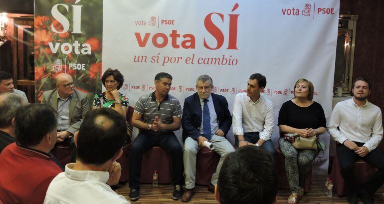 El candidato socialista al Congreso y cabeza de lista del PSOE por Albacete Manuel González Ramos, acompañado por el resto de la candidatura socialista al Congreso y al Senado, junto con el consejero de Educación, Angel Felpeto, han mantenido esta tarde una Asamblea Abierta con la comunidad educativa.