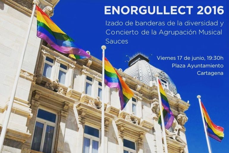 Fue el año pasado cuando, por primera vez, se izaron las banderas arcoiris, emblema de la diversidad sexual y del activimos LGTB, en la fachada del Ayuntamiento de Cartagena, y este 2016 el gesto volverá a repetirse. Con este este acto simbólico comienza la semana de actividades EnOrgulleCT, organizado por el Colectivo Galactyco, que se extenderá hasta el próximo día 25.
