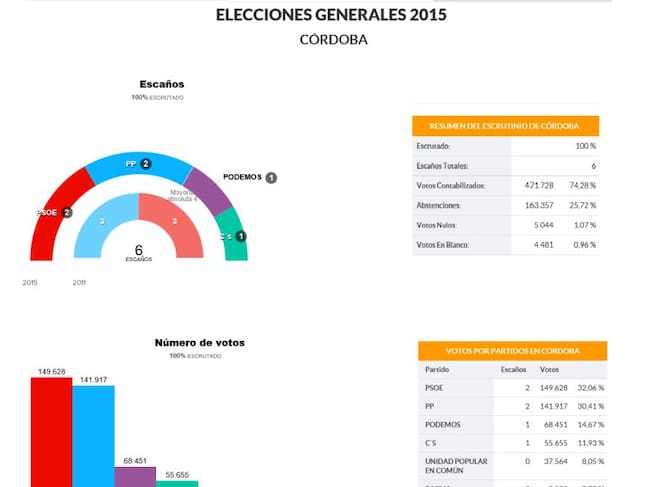 La fotografía del 26 de Junio promete ser un calco de la del pasado 20 de diciembre. Aunque en la provincia de Córdoba votarán 515 personas menos que lo hicieron en las pasadas Generales.