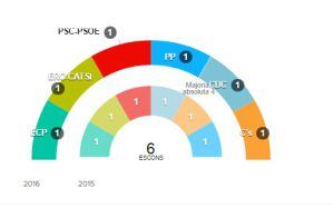 Esquerra Republicana assoleix la segona posició retallant distàncies amb el partit liderat per Fèlix Alonso. En segona posició ha quedat Esquerra Republicana, que esgarrapa distàncies amb En Comú Podem. El candidat dels republicans per la demarcació, Jordi Salvador, ha lamentat els resultats generals però ha allargat la mà a la coalició En comú Podem per sumar-se al procés català. En tercera posició es manté el PSC.