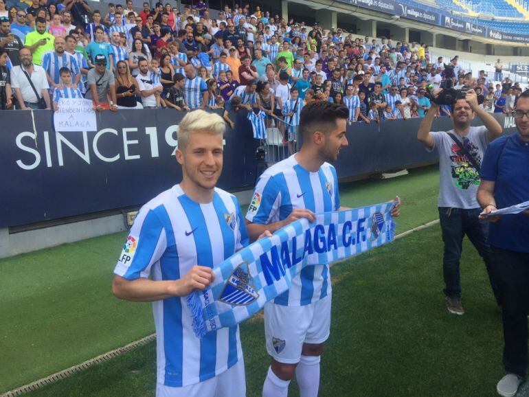 Los dos centrocampistas hicieron su puesta de largo ante los medios de comunicación y en el césped de La Rosaleda con la presencia de más de 2.000 personas en las gradas