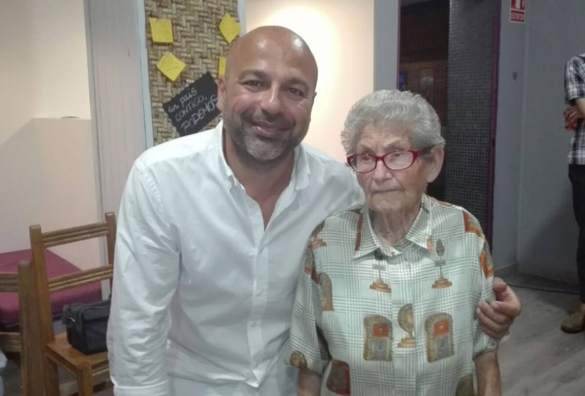 José García Molina, de Podemos, con una de las apoderadas del partido que tiene 90 años