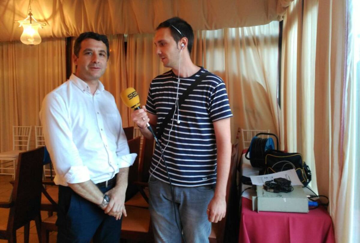Esteban Paños, de Ciudadanos, con el compañero de SER Toledo, Daniel Rodríguez, durante una de las conexiones en la jornada electoral