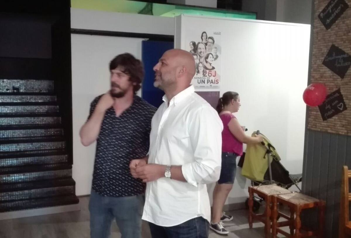 José García Molina, de Podemos, siguiendo la noche electoral en Talavera de la Reina