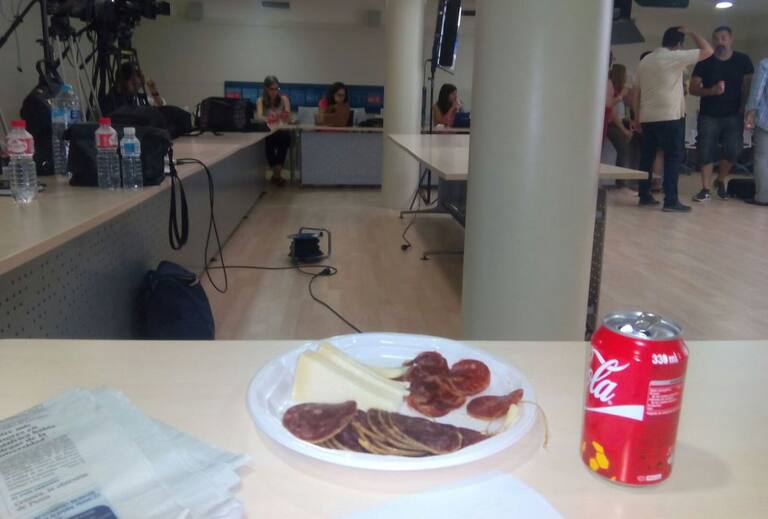 Chucherías como parte del cátering en la Venta de Aires de Toledo, dónde el PP de CLM está siguiendo la noche electoral