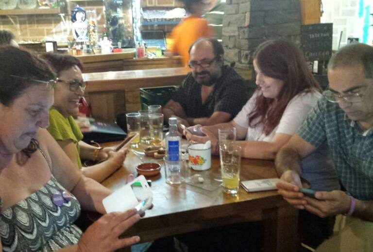 Candidatos de Unidos Podemos de Guadalajara siguiendo en escrutinio a través de sus teléfonos móviles
