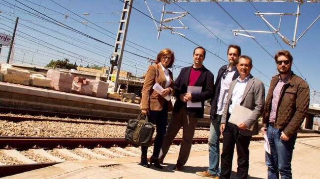 El alcalde de Xirivella, Michel Montaner, y la alcaldesa de Alaquàs, Elvira García, junto a sus equipos en una visita reciente al nuevo andén de Font de San Lluís- / CADENA SER
