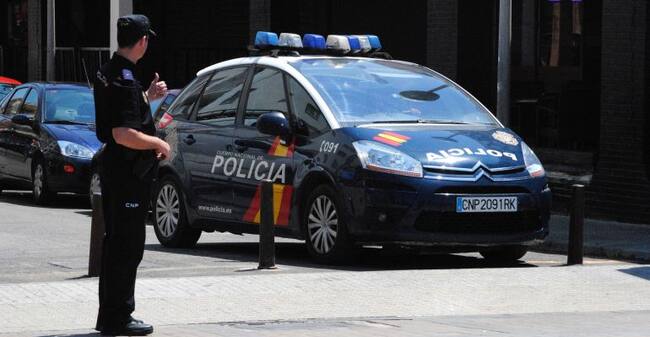 Un agente de la Policía Nacional frente a un coche patrulla