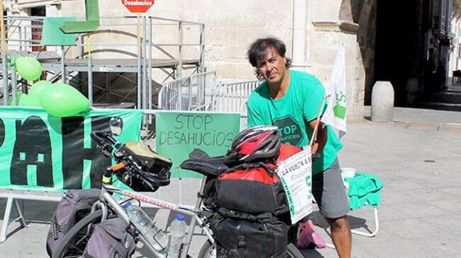 Néstor Yuguero, ciclista solidario lleva cuatro meses pedaleando por las reivindicaciones de la PAH