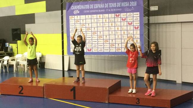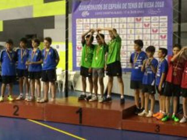 El club eldense vio como dos de sus jugadores subieron al podio. En la categoría pre benjamín femenino, Irene Sánchez (alumna del C. P. Antonio Machado) acabó tercera individual y Ángel Olaya (se formó deportiva y académicamente en el C. P. Padre Manjón hasta sexto de Primaria y que este curso ha estado en el Centro de Tecnificación de Cheste) también hizo un tercer puesto en la categoría alevín.