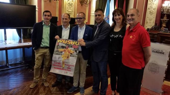 Presentación del curso gratis de Taichi, en el Concello de Ourense, con autoridades. loocales, provinciales y autonómicas, con el maestro Gago / Dinamic center