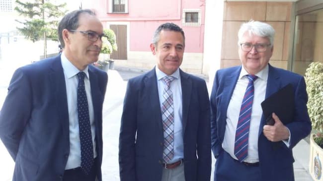 César Nohales, a la izquierda, con el presidente del Elche C.F. Diego García y el secretario general Juan Pascual / Pepe Morago
