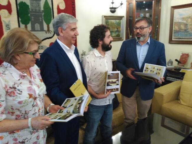 El alcalde de Plasencia junto al autor y el director del Cexeci con el comic sobre Inés Súarez / Cadena SER