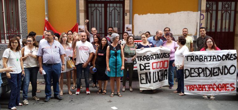 Esta protesta se enmarca en la convocatoria hoy de una huelga en CCOO por los despidos de parte de sus 42 empleados tras fracasar la mediación rechazada por la gestora del sindicato.