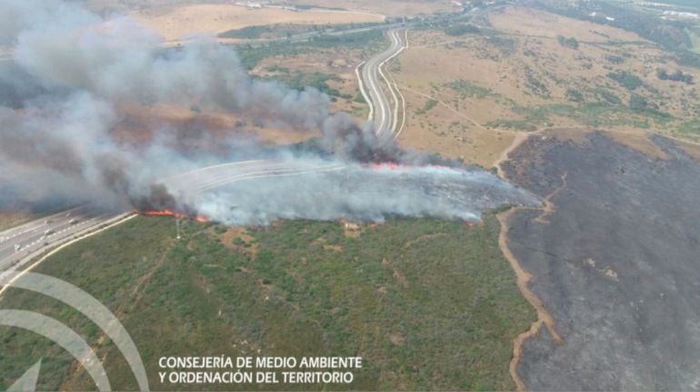 Efectivos del Plan de la Junta de Andalucía contra incendios forestales (Infoca) han informado este domingo de que se ha declarado un incendio forestal de pasto y matorral próximo a la zona de Santa Margarita, en la Línea de la Concepción