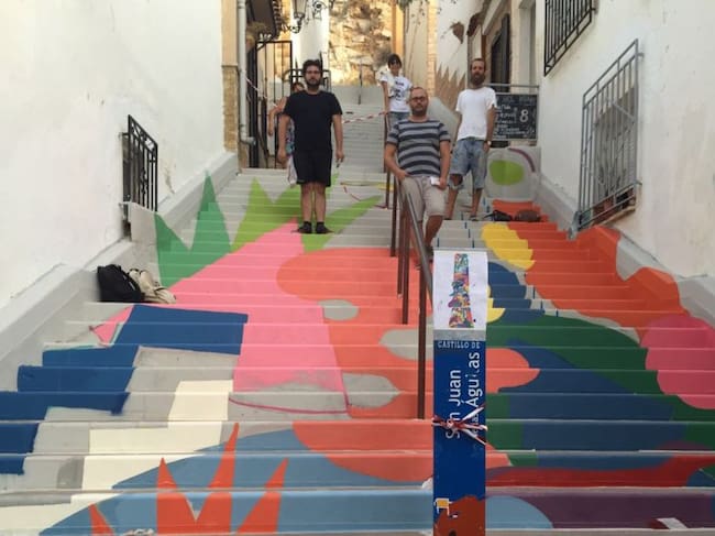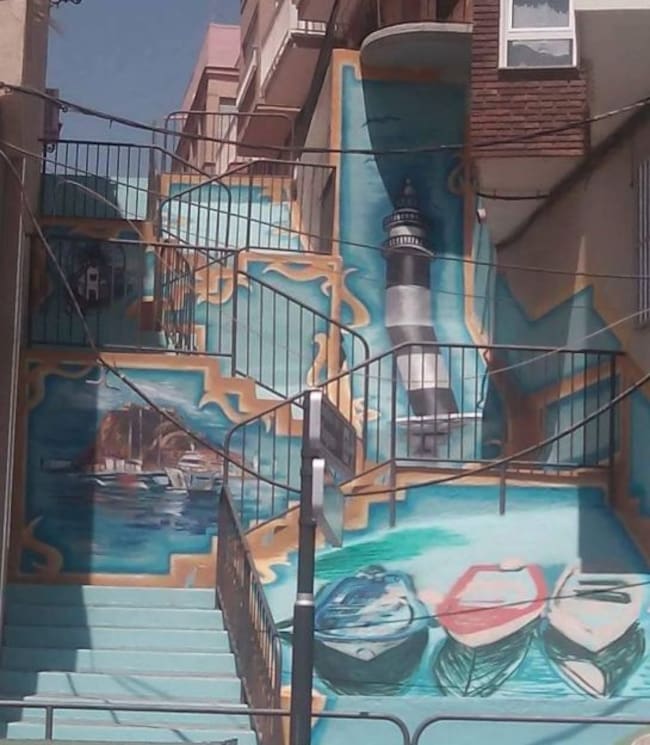 Diferentes artistas intervienen durante estos días en el casco histórico de Águilas para ambientar y dar color las diferentes calles por las que se llega a pie el Castillo de San Juan, o hasta el Molino de Sagrera, en el Barrio de los Pescadores.