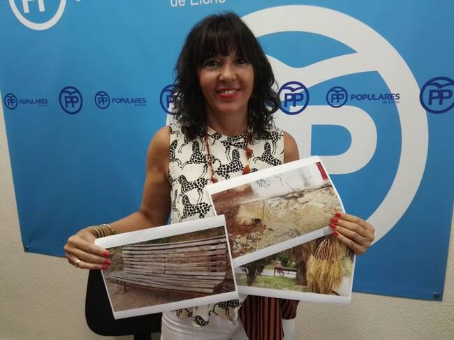 La portavoz municipal, Mercedes Alonso, con decenas de fotos en la mano ha denunciado esta mañana el estado en que se encuentra tanto el pantano como el Parque Infantil de Tráfico.
