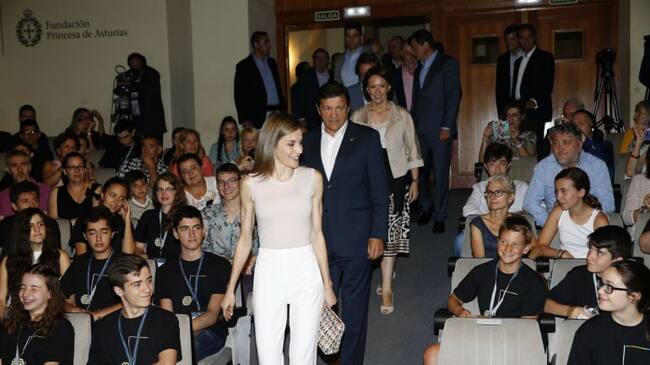 La reina Letizia presidió este viernes en Oviedo el acto inaugural de los Cursos de Verano de la Escuela Internacional de Música de la Fundación Princesa de Asturias que se celebran en el Conservatorio Superior ‘Eduardo Martínez Torner’. Doña Letizia, que compartió la mañana con alumnos y profesores, asistió a la intervención de los alumnos de oboe y charló brevemente con algunos de los estudiantes interesándose por el estado de los estudios de música en España. La Reina considera a los estudiantes de música la élite de una juventud sobre cuya formación se ha mostrado preocupada. De sus palabras ante el público que abarrotaba el Auditorio del Conservatorio Superior se deduce que a la Reina no le entusiasma la afición exclusiva de algunos jóvenes por determinados géneros. "Ellos escuchan reguetón, como les vas a hablar del adagio de la Novena de Mahler", ha dicho:
