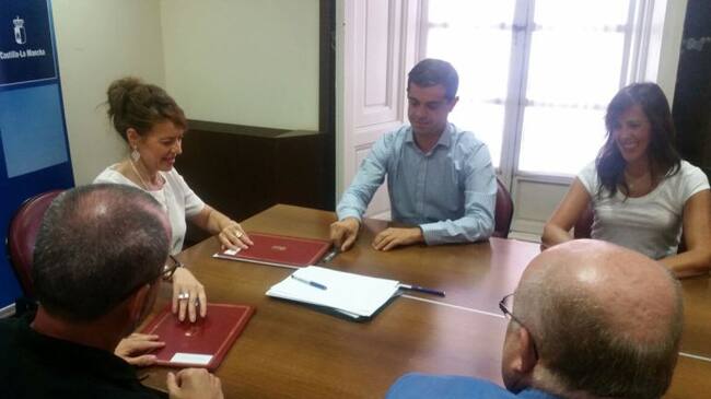 Firma del convenio con los alcaldes de Albacete y Villarrobledo