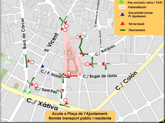 El domingo a partir de las 16 horas, se hará el corte total incluyendo la circulación por el puente de las Flores, y del puente de la Exposición, a partir de las 18.00 horas. Además, por ser último domingo del mes, la plaza del Ayuntamiento también estará cerrada al tráfico.