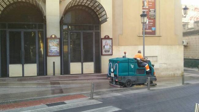 La fregadora en la zona del Teatro Castelar / Radio Elda