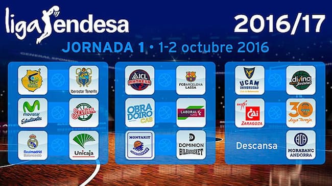La Liga Endesa 2016/2017 ya tiene calendario. Arrancará el fin de semana del 1 y 2 de octubre, y al ser equipos impares, habrá descanso