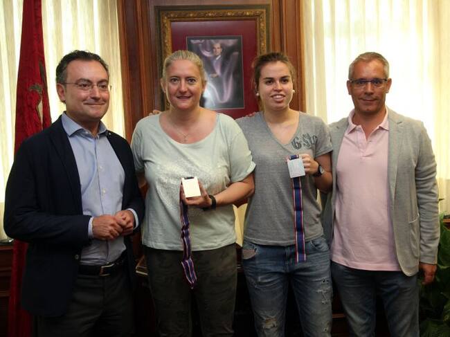 El primer teniente de alcalde de León, Fernando Salguero, y el concejal de Deportes, José María López Benito recibieron a la entrenadora del Aros, Moses, y la jugadora del mismo equipo, Lucía Alonso, que este pasado domingo lograron la medalla de plata en el Campeonato de Europa sub’18 de baloncesto femenino que se disputó en Sopron (Hungría).