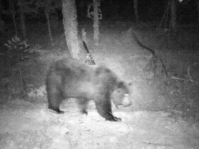 Un ejemplar de oso pardo macho es fotografiado de noche cerca de Garde