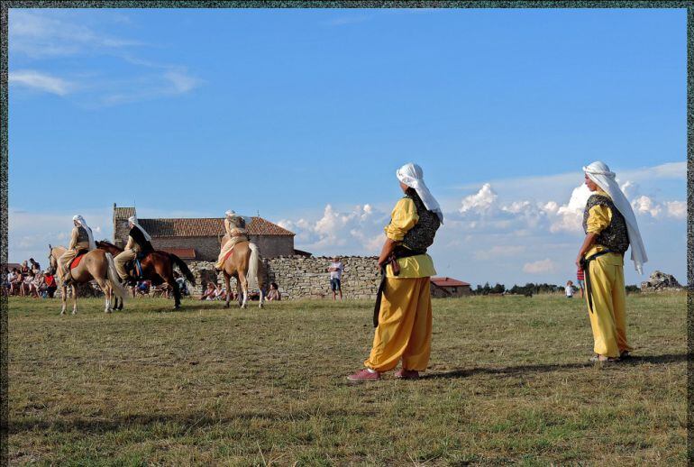 La recuperación de la Soldadesca de Iruecha cumple en este 2016 ya 28 años. La Soldadesca es la única fiesta soriana de Moros y Cristianas, declarada en 1991 fiesta de Interés Turístico Regional. “Comienza durante la tarde, junto a la Virgen de la Cabeza situada en la entrada de la localidad, cuando hombres uniformados de moros y cristianos evocan las antiguas batallas de ambos pueblos con estandartes de diversos colores. Posteriormente, cada bando desfila en distintas direcciones para representar el cerco musulmán a las tropas cristianas y su petición de rendición, para dar paso a la representación de la batalla en la que, tras la intercesión de un ángel de la Virgen, resultarán vencedores los cristianos”.