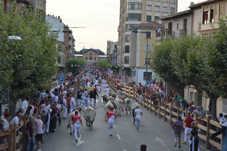 La manada ha salido rápida del corral de escolapios y compacta ocupando buena parte de la avenida Severino Fernández, sin embargo superada la plaza de Navarra uno de los toros que iba por el lado derecho se ha adelantado y ha entrado en la curva de la farola con tanta velocidad que ha chocado contra el vallado, poniendo en apuros a algunos corredores. Recompuesta la manada por la zona del puente se han comenzado a abrir huecos para los mozos y poco a poco se ha ido estirando hasta entrar casi rota en la avenida de la estación . Allí el toro que se había golpeado contra el vallado ha comenzado a quedarse rezagado por un calambre y ha tenido que ser la pericia de los pastores y sobre todo la colaboración de los mozos, que han ido tirando del animal con suavidad hasta que ha podido entrar a la plaza.