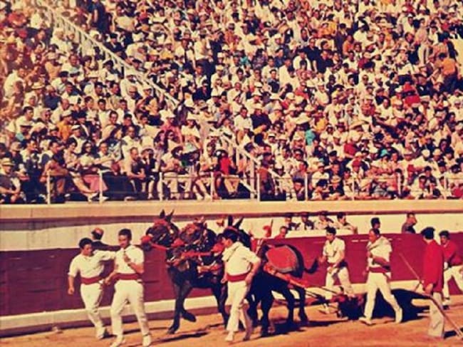 Foto del arrastre del primer toro lidiado en la nueva plaza de toros por Paquirri, el día 2 de septiembre de 1976 / Fotos Antiguas de Palencia (colgada por Julián García Torrellas