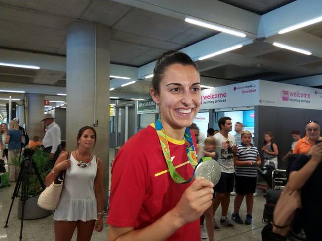 La alero de Binissalem llegó a Palma exultante y sonriente tras conseguir la medalla de plata en Rio de Janeiro