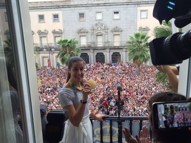 Huelva se vuelca con Carolina Marín, que exhibe orgullosa su medalla de oro