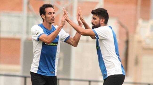 David Mainz y José Gaspar celebran uno de los goles marcados al Andorra CF / Hercules CF
