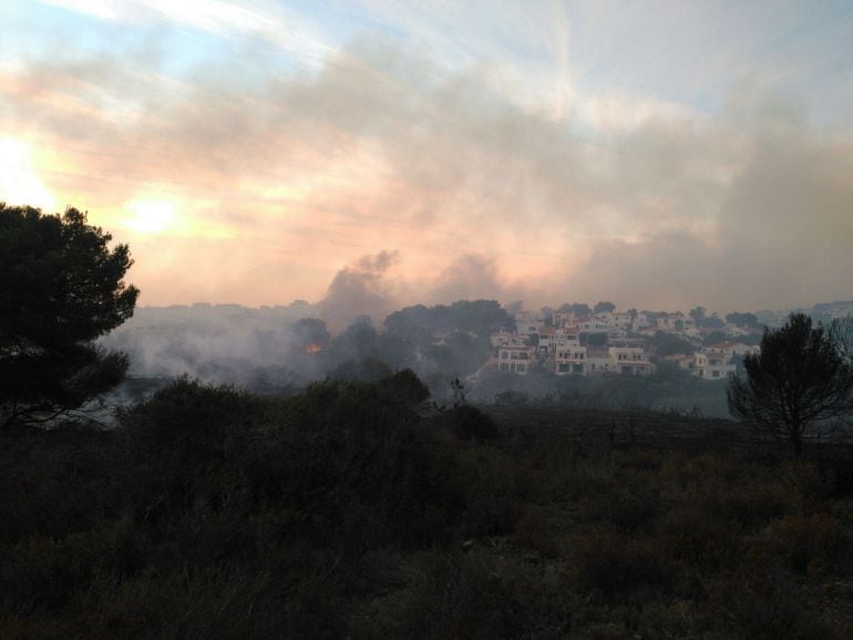 Por el momento no hay que lamentar víctimas personales aunque una vivienda en Cala Molí se ha visto afectada por el fuego.