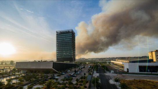 Mucho humo, visible desde toda la ciudad e incluso desde varios kilómetros del término municipal y que causó alarma en la población, sobre todo en la zona del Centro Comercial El Faro. Se estudió incluso la posibilidad de evacuar las tiendas y el aparcamiento del centro, aunque finalmente no fue necesario al no "superar" el fuego la Autovía A 5, que hizo de cortafuegos natural. La policía si tuvo que desalojar a una treintena de personas que se encontraban en el restaurante-hotel Las Bovedas, en una de las salidas de la autovía MAdrid-Lisboa, y recomendó a quienes hacían deporte en los campos de la universidad que se fueran de la zona.
