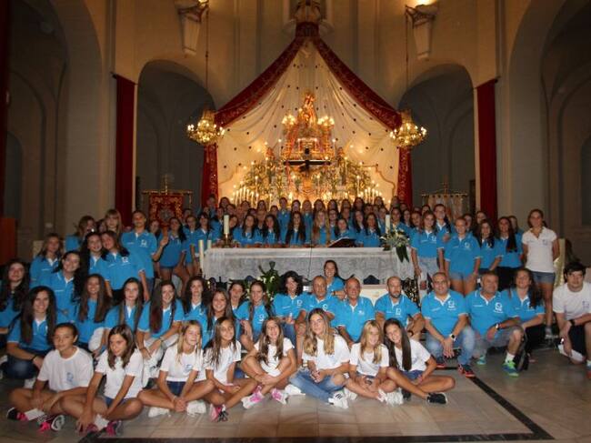 Una amplia representación del C. Bm. Fem. Elda se citó en la tarde noche de ayer, en la iglesia arciprestal de Santa Ana para realizar la tradicional ofrenda a los Santos Patronos de Elda, la Virgen de la Salud y el Cristo del Buen Suceso.