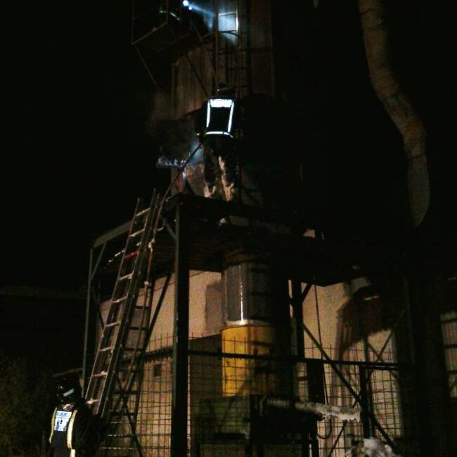 Efectivos del parque de bomberos de Lorca han apagado el fuego originado, por causas que se desconocen, en un silo en una factoría ubicada en el polígono industrial de Serrata
