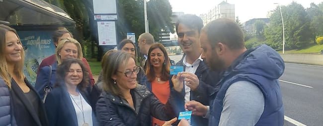 Ethel Vázquez, conselleira de Infraestructuras, junto a Diego Calvo y otros miembros del PP en campaña electoral / Prensa PP