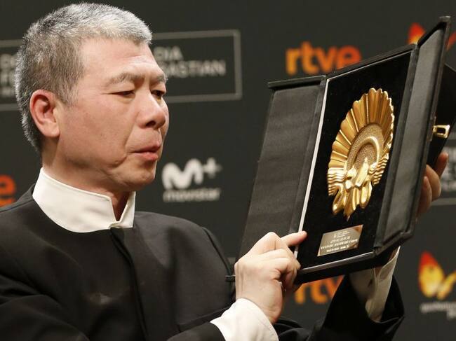 El realizador chino Xiaigang Feng, tras recibir la Cocha de Oro a la "Mejor película" por su trabajo "Im not madame Bobary" / JAVIER ETXEZARRETA (EFE)