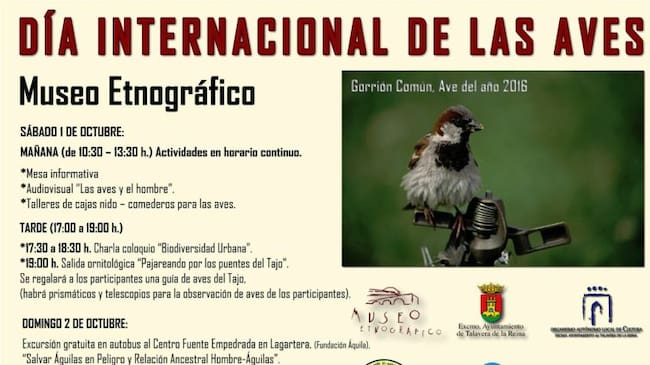 Con motivo de la celebración del Día Internacional de las Aves, el Museo Etnográfico de Talavera acoge una serie de actividades relacionadas con esta efeméride.