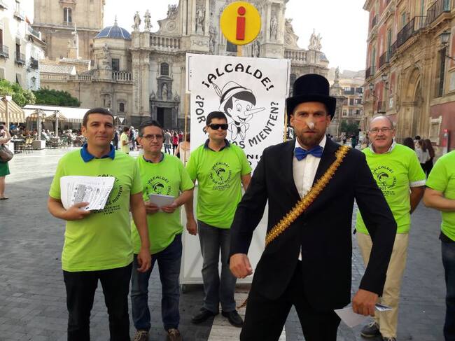 Mientras tanto, los trabajadores van a emprender una serie de movilizaciones como "perseguir" a Ballesta a cualquier acto público que realice con un "alcalde de pega" con chistera y una gran nariz de Pinocho.