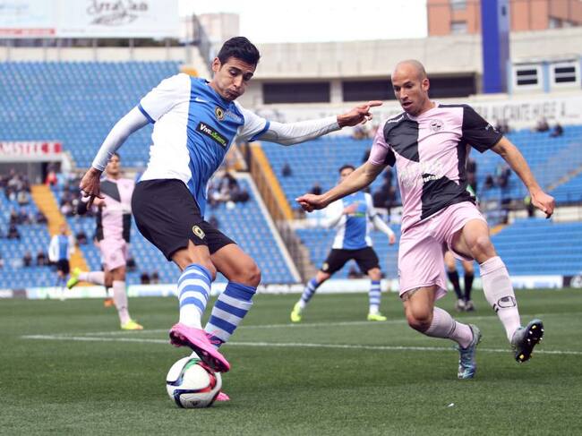 Miguel Ángel Nieto, jugador del Hércules, intenta superar a un jugador del Sabadell / Hercules CF