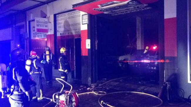 Arden varios vehículos en el incendio de un taller en el barrio de la Rubia