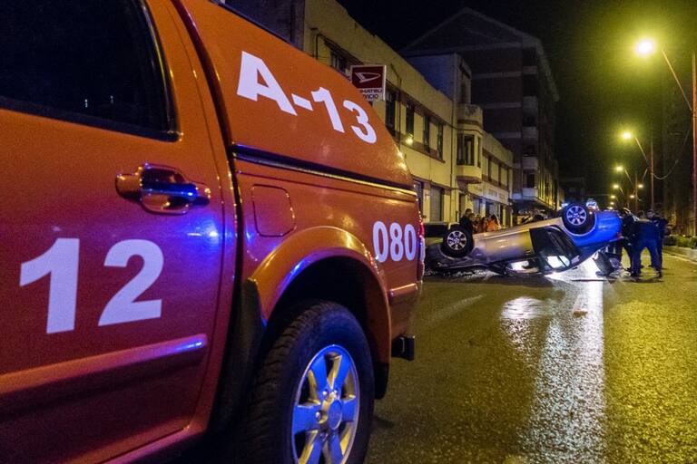 Un coche vuelca en Párroco Pablo Díez tras chocar con la mediana